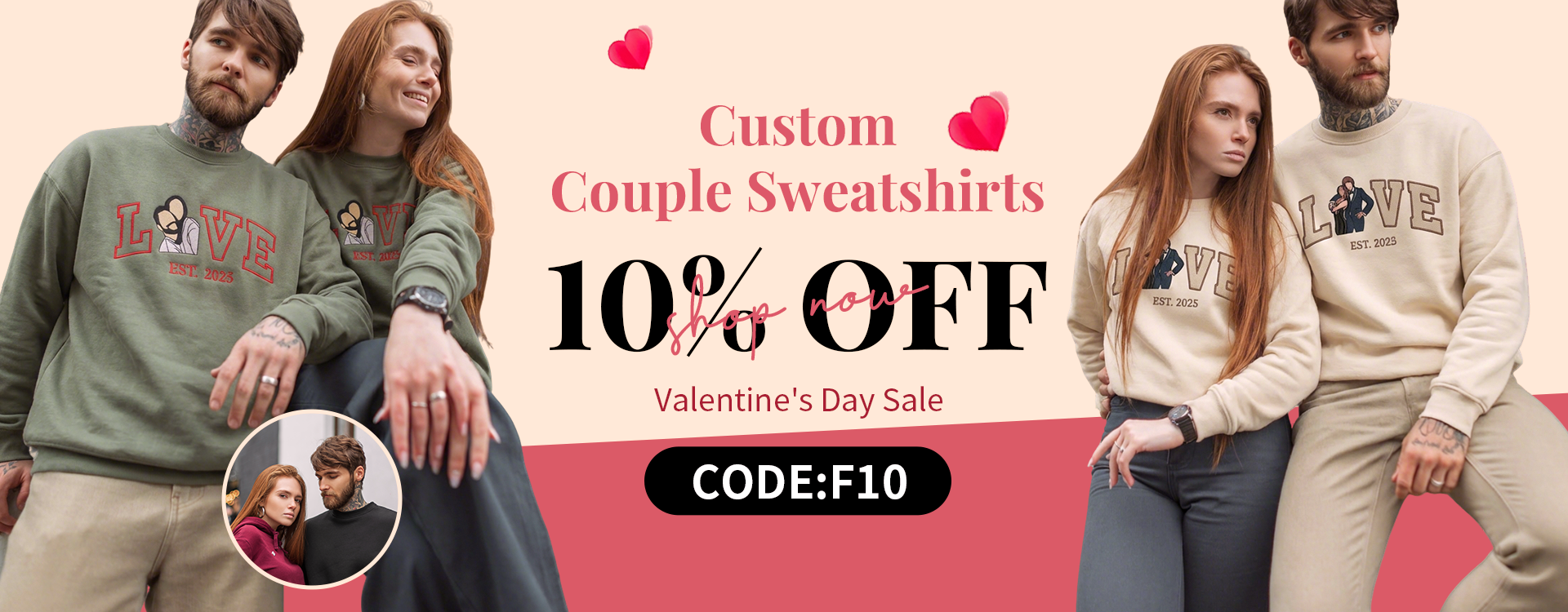Customized Couple Photo And Name Embroidered Sweatshirts