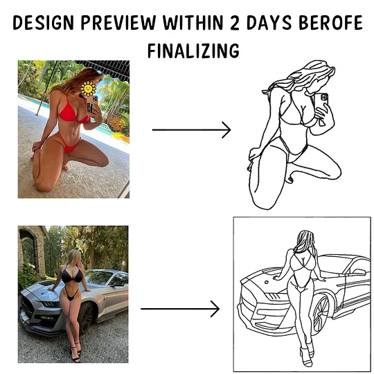 Upload your most seductive photo, and our professional designer will create a custom outline that captures your unique beauty. Every detail is tailored to make this gift just for him. We guarantee to begin within 24 hours.