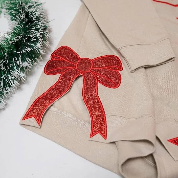 Custom Pet Portrait Embroidered Sweatshirt With Trendy Side Bow and Glitter