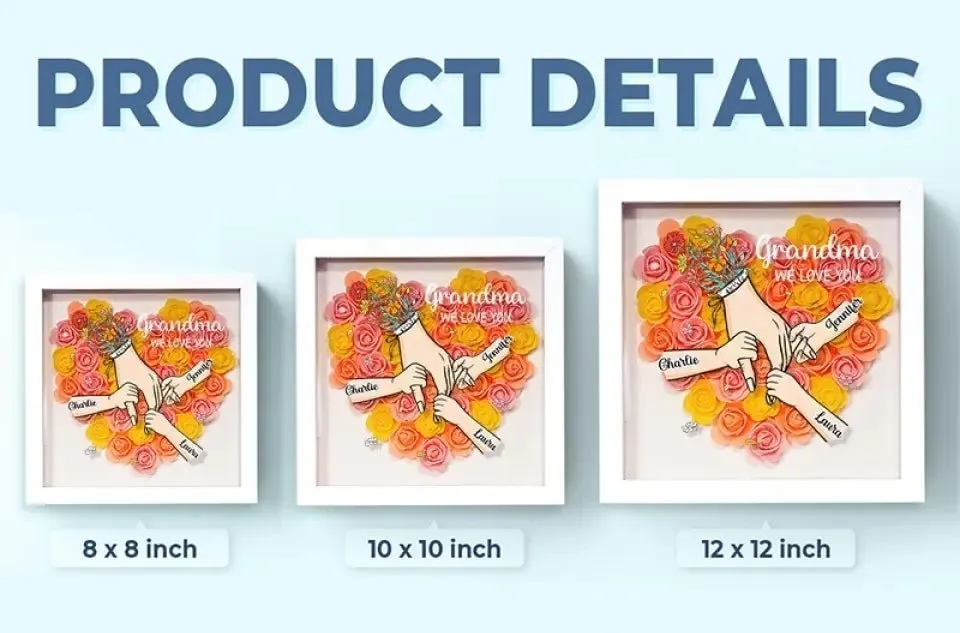 Family Love Blooms Forever – Personalised Mum & Grandma Flower Shadow Box with Names