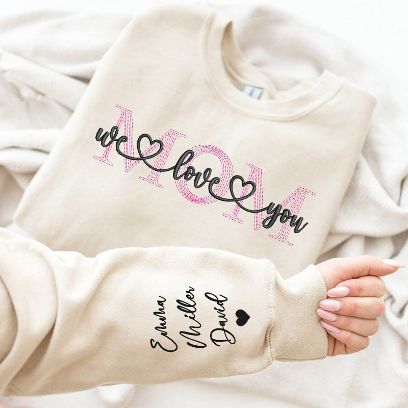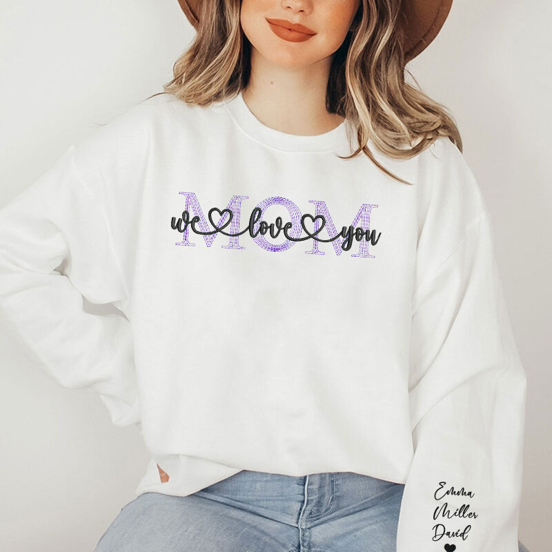 Personalized Sweatshirt Embroidered Mom We Love You Custom Names Perfect Gift for Mother's Day